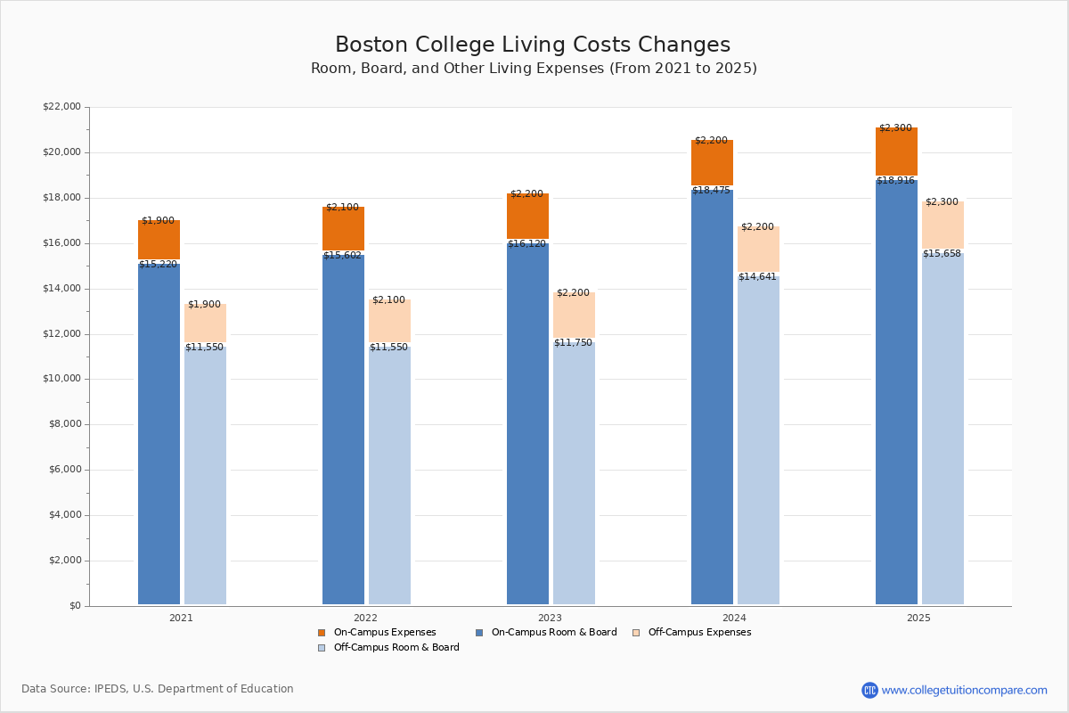 Boston College Tuition 2024. The 2024 undergraduate tuition has been risen by 5.46% compared to the previous year. The net price is the average cost of the university after aid and scholarship funds are discounted from the total cost, which comes in at $33,985 for the average student.